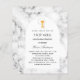 白いアーチフレームと背景としての大理石プリント。黄金のチャイと装飾としてのホスト。名前と詳細のパーソナライズおよび追加1枚= 1枚の招待状を印刷したエッジからエッジ