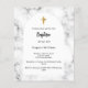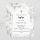 白いアーチフレームと背景としての大理石プリント。黄金の十字架。名前と詳細のパーソナライズおよび追加1枚= 1枚の招待状を印刷したエッジからエッジ