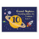 10歳になるのはこの世の外だ特に君の大甥の時!ロケット船や惑星や星がカードの前に埋め込まれハッピーバースデー!