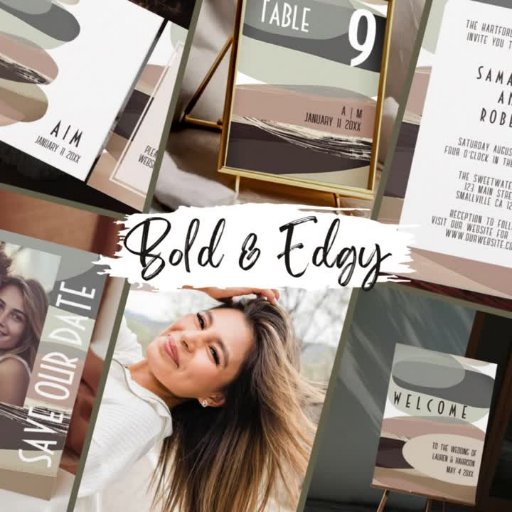 大胆でエッジの効いたウェディングにぴったりな美しい招待状。幾何学的なアクセントがユニークでモダンな雰囲気を醸します。ショップ内でマッチするアイテムを探してみてください。個人設定機能を使って詳細を編集できます。