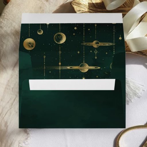 天の三日月相エメラルドウェディングゴールド 箔招待状