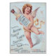 天使はオーデコロンのボトルを握ります。 それはニューヨークからの森林花のためであり、ヴィンテージの広告です。