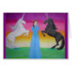 着色された鉛筆の芸術。 威厳のあるなライト及び暗闇の養育ユニコーン及び無実の中世若い女の子その間、多彩な空とを越える…