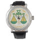 腕時計の緑と白の〔占星術の〕十二宮図の天秤座のサイン。