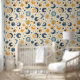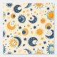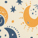 素晴らしい青と黄色の太陽、月と星のモチーフ。天をテーマにした子供部屋の装飾に最適