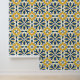 太陽に照らされた輝き:青と黄色のアズレジョタイル 壁紙