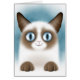 青い背景の青い目のふわふわのシャム猫は微笑み。