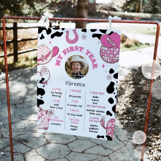 女の子のファーストロデオ 1歳の誕生日パーティーの写真 招待状
