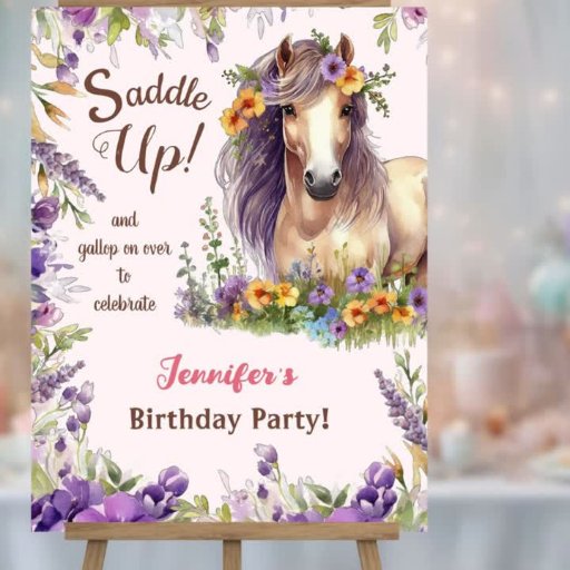私たちの'女の子の馬10th誕生日パープルフローラサドルアップ招待状でサドルアップ!' 🎉🎂この愛らしい女性のカーボーイテーマとスタイルでお祝いをキックオフ!今すぐ取り付けポニーのパーティーを始めよう!🎉🎂