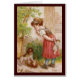 人形を持つ女の子は彼女が子犬が19世紀後半からのこのビクトリアンな貿易カードの子ネコと遊ぶのを見ると同時に思慮深く見ます。