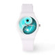このスポーティなバレーボールインとヤン腕時計は、半透明白黒のインとヤン要素を備ミニマルえ、バレーボール(白い縫い目のみで表される)とターコイズ背景を明らかにカスタマイズし、彼女の名前と共に-katz_d_zynesによって