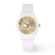 このミニマルなスタイルサッカーウォッチは、シックでデジタル的に作成されたテクスチャを持つ金ゴールドサッカーボールグラフィックを特徴とし、サッカーボールの典型的な黒いパネルとパネル間の白い継ぎ目を表す暗い領域を持つ彼女の名前とモノグラムまたはジャージーの番号とkatz_d_zynes
