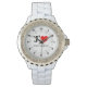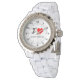 女子Iハートラインストーンホワイトエナメルウォッチ 腕時計