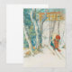 クロスカントリーの樺の木の木の女性が彼女のクロスカントリーの上に置く。スウェーデン素晴らしの画家カール・ラルソンによるヴィンテージアートの水彩画。