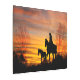 女性のカーボーイサンセットライドメタルウォールアート メタルプリント