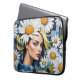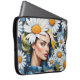 女性の顔とデイジーとデニムパッチワーク ラップトップスリーブ