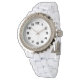 明るい色無地の"白"女性のライン石ホワイトエナメルウォッチ。この白は真っ白だ。クリック色を変える、またはパターンやデザインを追加するために「オン」に設定する。製品16進コード: #ffffff