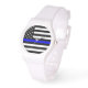 女性のための特別なデザイン:薄いBl;ueラインリストウォッチのバリエーション違う – ウォッチのデザインから選違う択。PatrioticSourceによるデザイン – 警察官と私たち昼と夜の全ての貴重な女保護性のために設計された。Blue Line Shop @ patrioticsource.comも参照