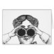 彼女の目に遅れる双眼鏡を持つ女性のヴィンテージラインスケッチ