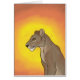 これは彼女の後ろ絵画に美しいアフリカの夕日を持つデジタルの雌ライオンである。