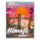 姫路日本の花のポスター。美しいピンクの日本の漫画の旅行ポスター。