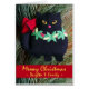 娘さんとその家族のためのメオウィーのクリスマス、黒猫オーナメント。クリスマスのグリーティングカード感じには、首にホリーと赤いリボンが付いた黒い猫のオーナメントがのまわりに入っている。松の葉は裏地として機能する。画像と詩の著作権© Shoaff Ballanger Studios.