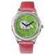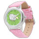 子供のためのギフト時計。子どもの時計に緑のフィールドの背景を持つ羊の漫画。