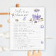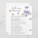 招待状は、水の色をベビークレードル、紫色の丸い雲の型枠の子供部屋のモバイルで、子供のおもちゃを示している:齧歯動物、車輪の上の鴨、テディベア、バニー、よだれかけ、おしゃぶり、ピラミッド。