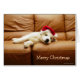 子犬はクリスマスの帽子、ソファーのラウンジを身に着けています