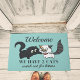 子猫のティール(緑がかった色)おもしろい猫の姿 ドアマット