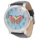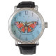 孔雀バタフライ水色アクリル壁時計 腕時計