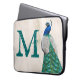孔雀バードフェザーティール(緑がかった色)ターコイズヴィンテージビクトリアンモノグラムイニシャル15インチノートパソコンケースバッグパーソナライズされた