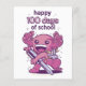 バックパックを着て大きなペンを持つアクソロトルを特徴としたかわいいデザイン"ハッピースクールの100日"。学校や幼稚園の100日目はうれしい。