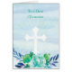 この美しい水色のハッピーイースターが花の背景を見てほしい。十字架は白い光線を中心とする。彼に復活祭賛美の祭壇を送れ。