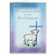 羊は、あなたの孫の最初の告白として、このカトリックのお祝い祝カードの上の青い十字の前にある。