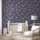 青い紫の背景におもしろいカラフル衛星、ロケット、惑星や星とキュートで宇宙デザイン。男の子の部屋、子供部屋、または遊び部屋に最適。