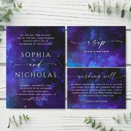 宇宙座席表夜星。ネイビー結婚ズ 招待状