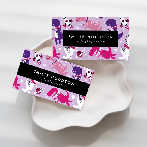 可愛い、おもしろいと宇宙恐竜の愛らしい名刺。そしてモダントレンディーデザイン、完璧なセ子供へン遊ト、遊び場、アクティビティの中心、子ども、気にbabysitter、nannies。