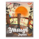 Yasugi Japan Blossom bridge and garden travel poster in the beautiful orange setting sun landscape.
