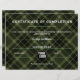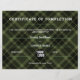 さわやかでスタイリッシュなタートンパターンの完了証明書。色:黒、緑。手書きの場合は、白または銀色のペンで記入してください。