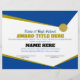 TEAM COLORSとカスタマイズAward Descriptionを使用したSPORTS Award。/OR/共通のプリロードされた説明の1つを選択できる。****レイヤーの理解が必要クリック**** *****「さらにへカスタマイズ」 ***** *すべての文字の色を変更でき、オブジェクト*事前に読み込んだ一般的な賞の説明を「表示」することもできます。*特定の要素を「非表示」または「表示」できます。*ヒント – スポーツやその他のカテゴリのzazzleアイコンを使用して、テンプレート上の任意の場所にテーマを追加。*ヒント – 「ACHIEVEMENT AWARD」の代わりにマスコットまたはロゴをロードする/または/利用可能なAchievement Sealを「表示」できる
