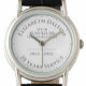 退職またはロングサービスを記念する時計。名前、会社または団体や組織、および日付を含むようにパーソナライズ。特別ユニークな功績の記念。定年退職またはロングサービス腕時計。ホワイトウォッチ顔。