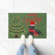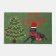緑のエレガント黄麻模様の美しいラブラドールの実用的なデザイン。このデザインは多くの点で美しく、同時に実用的に見える。黒いラブラドール愛好家のためのdoormatデザイン。文字メリークリスマスは赤で美しい台本。サンタハットとおもしろいクリスマススカーフを着て歓迎とラブラドール。