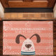 家は誰かが走可愛い犬の姿を迎える場所である。このデザインは、犬の骨が入ったストライプの水玉模様の背景に可愛い子犬が登場する。ペットを愛する人のための完璧な引っ越し祝いパーティーギフト。このカスタムデザインを独自の文字でカスタマイズ