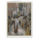 このカバーの美しい挨拶状の特徴は彼のポートレートの絵画のためにジェームスTissot (1836年10月15日- 8威厳があるな1902年)による水彩画の再生、フランスのなペインター特に注意しました。 この不透明な水彩画は(灰色のグラファイトにすの目なし紙をされた)寺院の司祭にイエス・キリストを示しているメリーおよびヨセフを示します。 私達および腕に戻って彼女が付いているProphetessのアナの立場は右に、がSimeon公正な立場広げました(杖と)。