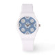 対称オレンジ色の花タイル模様(青) 腕時計