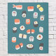 緑の日本のティール(緑がかった色)で美味しい寿司芸。オリジナルアートby Nic Squirrell.