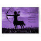 紫色の天体の背景に対するサギタリアンの中心人物のシルエットのイメージは、この〔占星術の〕十二宮図カードを魅力的にする – 射手座の記号の素晴らしい資質のリストによって強化さ占星術のれユーモアのある:理想主義的、楽観的、寛大、情熱的。自分の個人的なメッセージを内部に追加す離れる空白のもし。誕生日カードまたは全大事な行事カードに最適