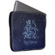 ラップトップスリーブは、深いミッドナイトブルーからブラックに格下げされた星空の背景に対して、星座の星で覆われた柔らかいシルバーブルーの射手座のシンボルを特徴とする