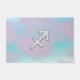 パステルベビーブルーとピンクのデコ鮮やかープリントの背景に真珠の射手座〔占星術の〕十二宮図の母サイン。彼女モダンのためのカスタムデザインの素晴らしバースデーギフトアイディア。「このデザイ頼ザ」リンクを使用し連絡て、お客様の特別なデザインリクエストやカスタマイズのニーズに対する支援を受けることができます。